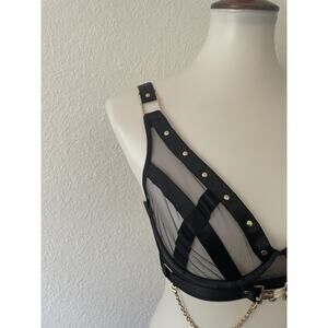 Honey Birdette Bra Indira Sheer Mesh Studded Lingerie Black FLAW