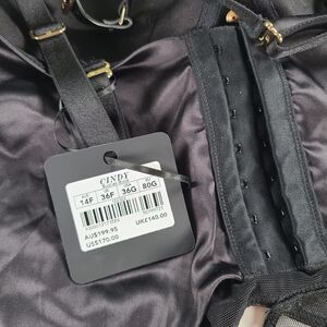 Honey Birdette Cindy Bustier size 36G black with gold rabbit. New with tags. Please see photos for details.