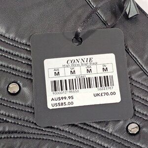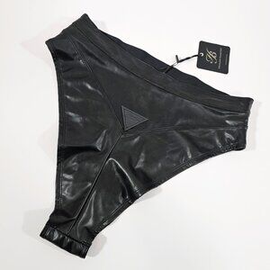 Honey Birdette Connie Black High Waisted Brief Faux Leather with Studs Size M