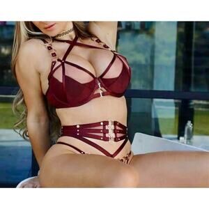 Honey Birdette JOWAL❤️ Wine Red & Gold Bra 32DD