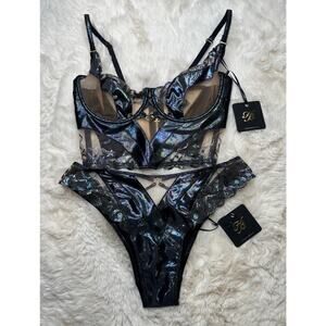 Honey Birdette OLYMPIA🖤 Black Oil Slick Shimmer 2 Piece Set 32DDD & S Brief