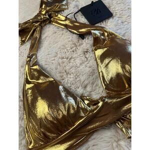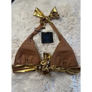 Honey Birdette PAMELA✨ Gold Shimmer Triangle Swim Top Small