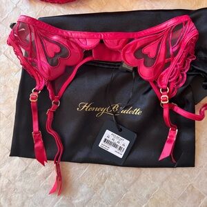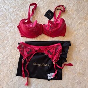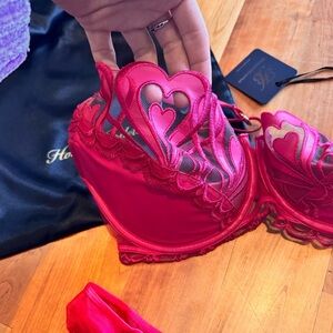 Honey Birdette Red Heart Set NEW NWT giftable 34F XS 34DDD
