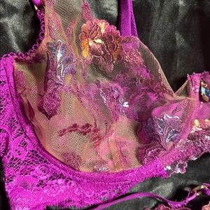 Elegant rainbow lace bra set by Honey Birdette. Features intricate gold rainbow floral embroidery. Perfect for adding luxury to your collection.
