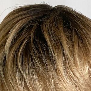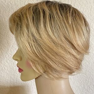 Honey Blonde Tapered Pixie Bob Dark Roots Synthetic Wig Feminine One Size Chic