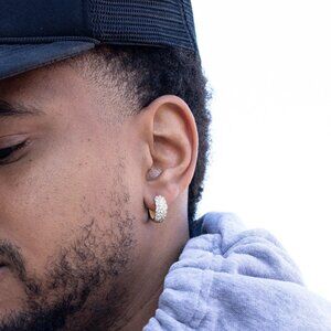 Mosaic Honey Comb Flower Set Yellow Gold Plated 925 Sterling Silver Iced Cz Hoop Earrings 3d Fully Iced Cubic Zirconia CZ 12.5mm Unisex Ice Out Huggie Sparkle Hoop Earrings Fine Jewelry Birthday Gifts for Men,Women