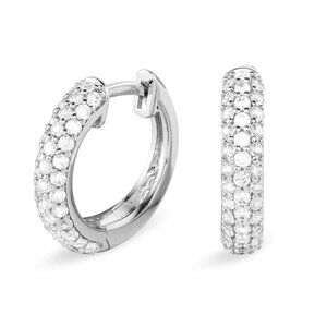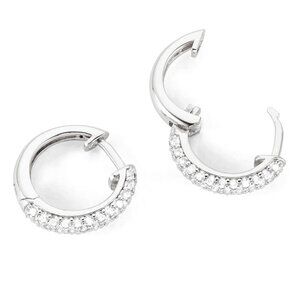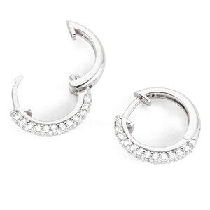 Honey Comb Set 3D Iced Cz White Gold Plated 925 Sterling Silver Hoop Earrings