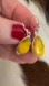 For your consideration is this pair of sterling silver dangle honey dahlia Kingman turquoise earrings that are handcrafted from 925 sterling silver and feature a dangle style with an open-back design. Each earring is set with a teardrop-shaped honey dahlia (various yellows) gemstone that displays unique veining patterns in shades of gold and brown. The gemstone itself is a composite material made from natural turquoise, copper, and oyster shells pressure-treated together, and sourced from the Kingman Mine in Arizona. This combination results in a striking and unique piece of southwestern-style jewelry.