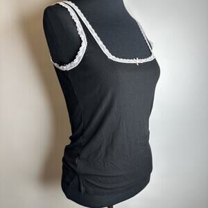 Honey Dew Fine Rib Lace Trim Tank Top Cami Square Neck Black Size S Soft Comfy