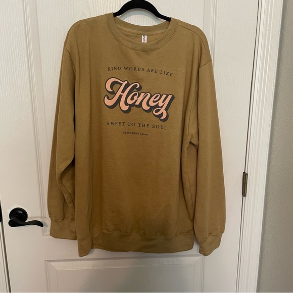 Embrace comfort and style with this brown graphic sweatshirt featuring a 'Honey' print. Ideal for casual wear.