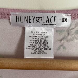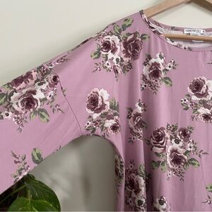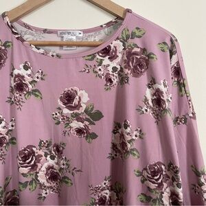 EUC Worn once. Beautiful floral tunic top by Honey & Lace. Very soft, stretchy and comfortable. Drop shoulder. Fabric is a soft purple/pink plum color.