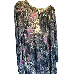 Honey Me Ladies Long Sleeve Purple Cheetah Pattern Scoop Neck Dress SZ Small