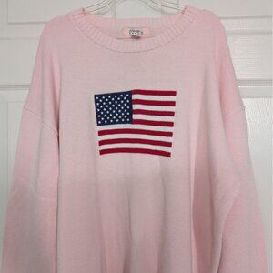 Honey Peach American Flag Sweater Womens Size XL Pink Cotton Blend Crew Neck