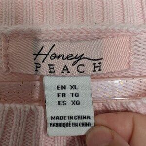 Honey Peach Womens Cotton Blend Pink American Flag Crew Neck Sweater Size XL