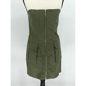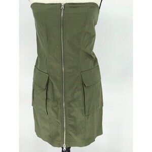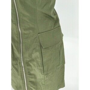 Keywords: Honey Peach Dress, Green Mini Dress, Cotton Summer Dress, Cargo Pocket Dress, Full Zipper Dress, Women's Size Small Dress, Casual Chic Dress, Utility Style Dress, Trendy Summer Outfit, Lightweight Cotton Dress