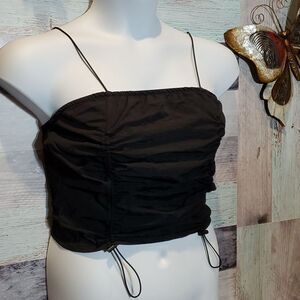 Honey Peach Sz L Black Nylon Drawstring Tank Top Spaghetti Strings 624