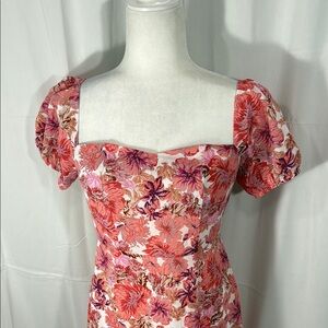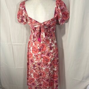 Embrace elegance with this stunning floral pink dress. Perfect for any occasion, it features a flattering silhouette and charming puff sleeves. NWT