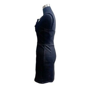 Honey Punch Black Zip-Front Bodycon Dress Size XS. Beautiful black denim dress can layer a white t-shirt underneath for a throwback look or dress up with heels.