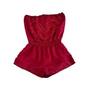 Honey Punch Boutique Strapless Embroidered Maroon Red Women’s Romper Size Medium