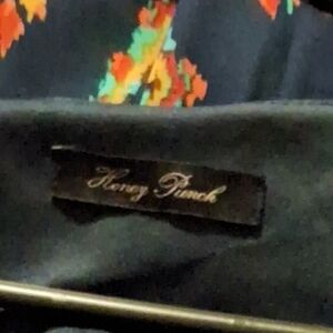 Colorful floral romper by Honey Punch. Features vibrant hues of orange, green, and blue.
