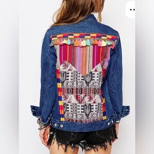 Honey Punch Embroidered Huipil/Tassel Jean Jacket M/L
