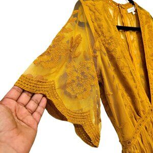 Honey Punch Floral Lace Maxi Dress Mesh Open Slit Short Attach Romper Boho Small