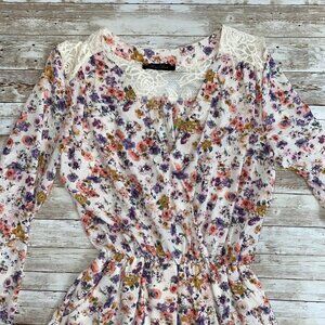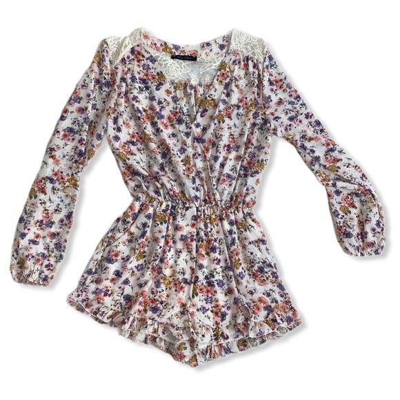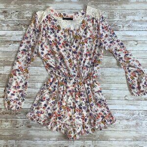 Honey Punch Floral Print & Lace Romper