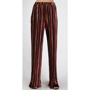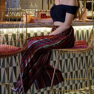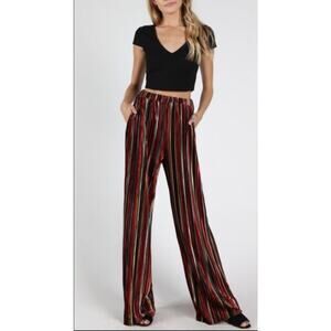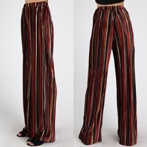 Honey Punch Joplin Wide Leg Velvet Pants Medium Striped Pleated Retro Party