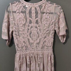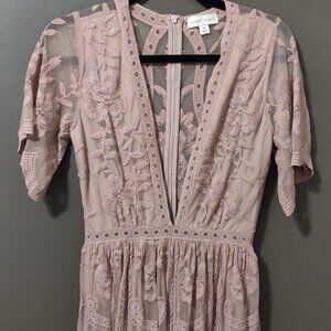 Honey Punch Open Road Romper With Nude Lace Maxi Dress Overlay SIZE XS/Small
