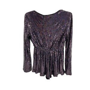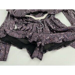 Honey Punch Purple Sequin Short Romper Size Small Holiday Party Long Sleeve