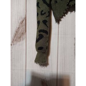 Honey Punch Sweater Ladies Extra Small Green Cropped Distressed Animal Print