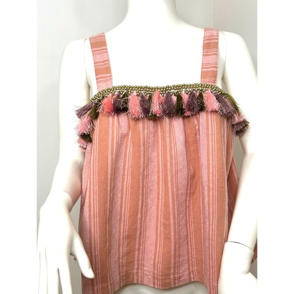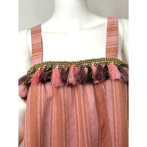 Honey Punch Tank Top S Women’s Pink Orange Striped Tassels Gold Beads Straps