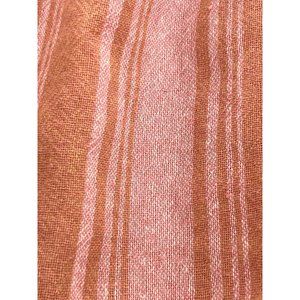 0106B- Honey Punch women’s tank top with 1 1/8”?straps, gold, round beads across bodice band, with tassels across band in purple, green, pink. Pink and muted orange stripes down the front in wide and thin stripes. RN#139726. BoHo, hippie, relaxed, fit, 100% cotton.(main body.), 100% rayon.(lining.). Loose fit, lined, made in China, elastic back,