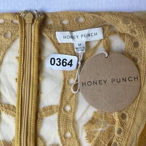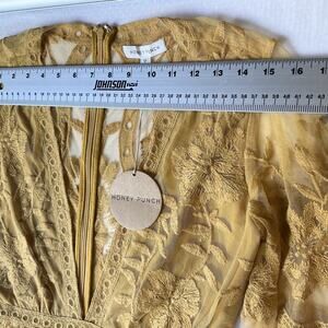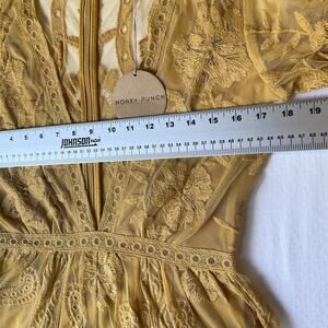 Honey Punch Women Romper Size M Yellow Floral Embroidery Bohemian Sheer V-neck