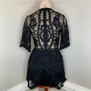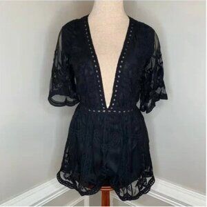 Honey Punch Women's Artemis Black Embroidered Lace Romper Size Small