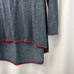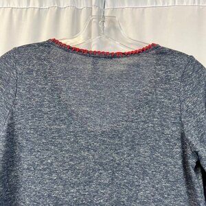 Honey Punch Women’s V-Neck Long Sleeve Top Hi-Low Stitched Trim Blue/Red S