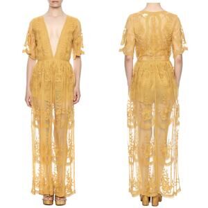 Honey Punch by ASOS Yellow Romantic Lace Plunging Neck Boho Maxi Dress Romper