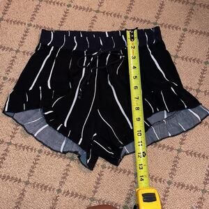 Honey Punch black w white stripes boho shorts w ruffle bottoms. No size or fabric tag - feels like rayon. Go by measurements- estimate a M. Very gently worn - maybe twice.