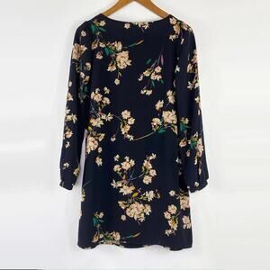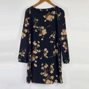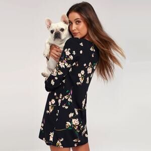 Honey Punch for Lulus Navy Floral Print Long Sleeve Shift Mini Dress NWOT