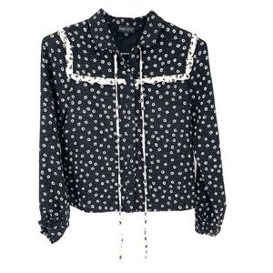 Honey Seed Vintage Flower Necktie Button Down Blouse Top