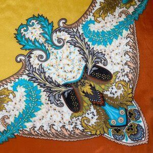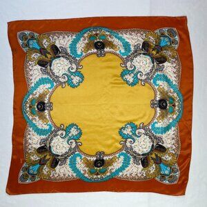Honey Silk Scarf 30x31" Square Leafy Floral Pattern Multi Color