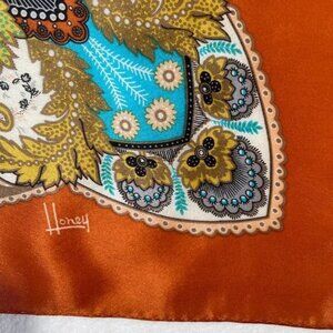 Honey Silk Scarf 30x31" Square Leafy Floral Pattern Multi Color