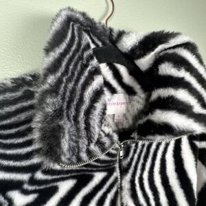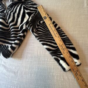 Honey & Sparkle Faux Fur Soft Zebra Print Cropped 1/4 Zip Pullover Size Small