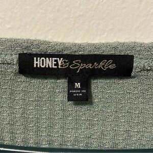 Honey & Sparkle Shirt Women’s Sweater Size M Crop Top Green LongSleeve