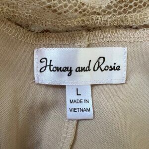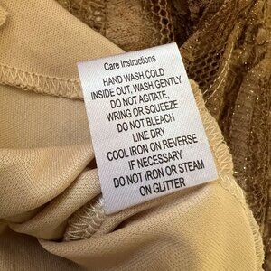 Honey and Rosie brown tan glittery lace long sleeve sheath dress