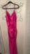 Honey and Rosie Spag Strap V-Neck Ruched Slit Glitter Satin Long Dress size XL