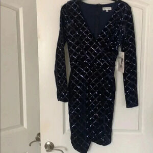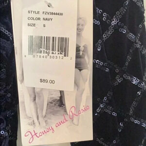 Honey and Rosie Velvet Dress Sequin Navy Blue Size Small New