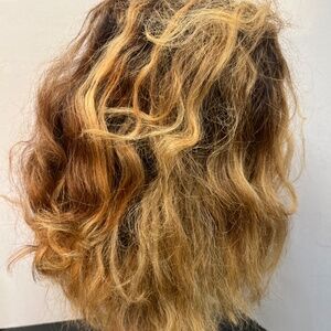 Honey brown Blond Highlight HUMAN HAIR CURLY Wig. pre cut lace front