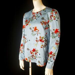 Honey Punch blue floral patterned long sleeve top. Size: Small 100% Polyester
