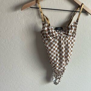 Honeybun Checkered White and Gold Bodysuit